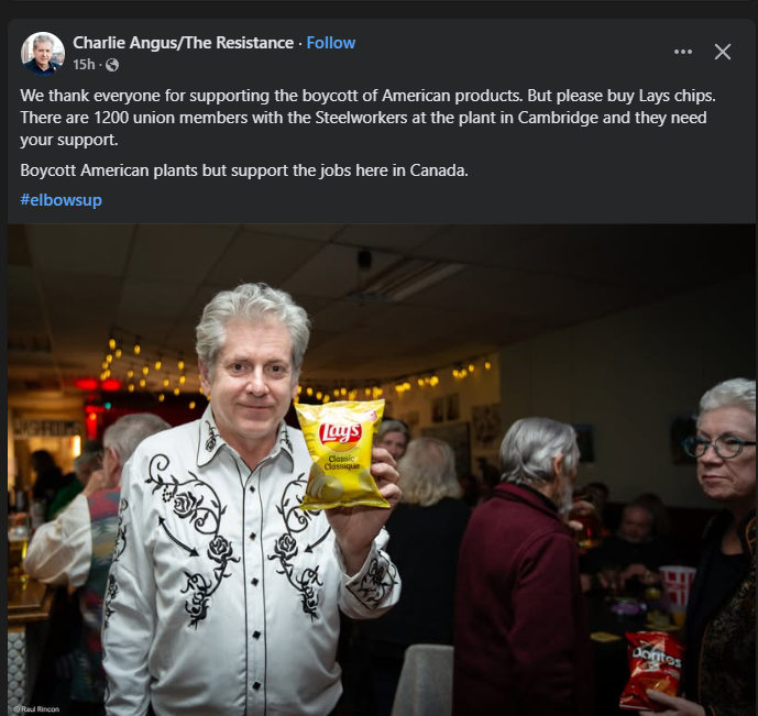 Also, a good thought. I do find there is a spectrum to "Buy Canadian". We want to teach the US a lesson, but also do our best not to hurt our own citizens.