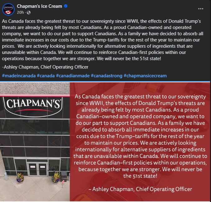 Chapman’s is an important employer in my area and incredibly generous to the community.